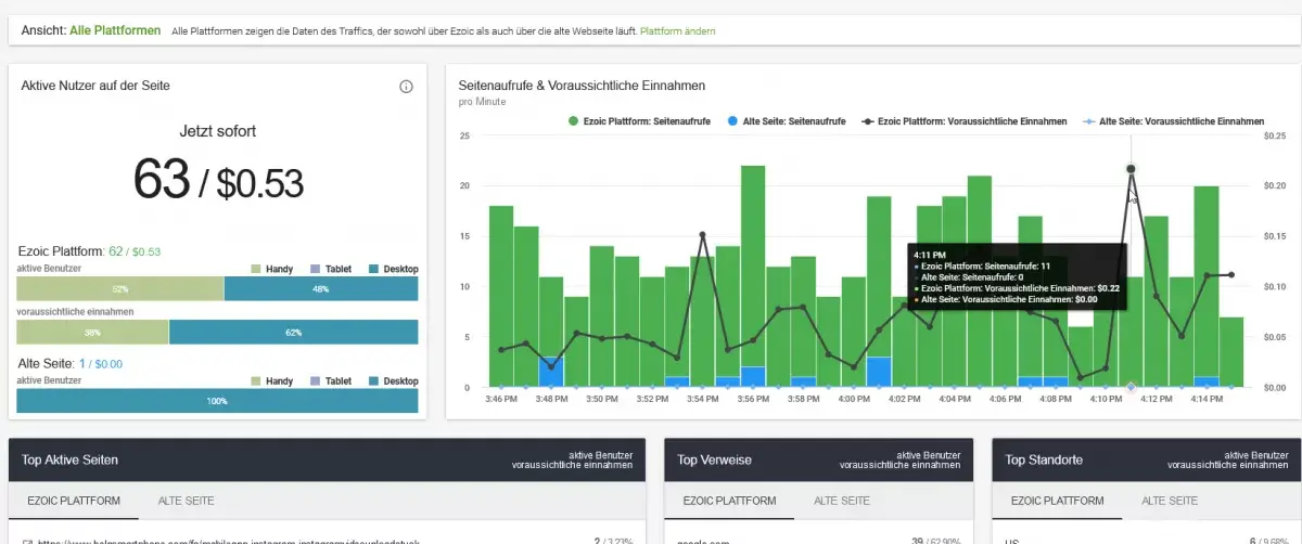 Ezoic-Dashboard und Big-Data-Analysen
