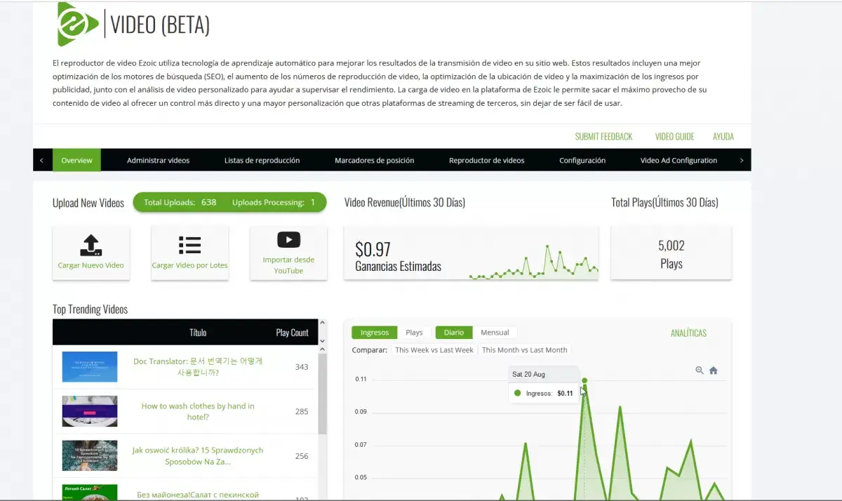 Ezoic Video Player brinda a sus usuarios la capacidad de cargar su propio video, así como probarlo. La plataforma ha implementado con éxito la inteligencia artificial, que ayuda a promocionar los videos de los usuarios.
