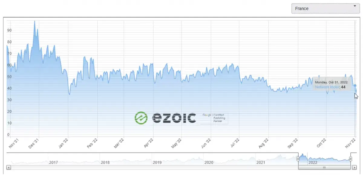 Pour s'en assurer, jetons un coup d'œil à l'indice des revenus publicitaires EZOIC.