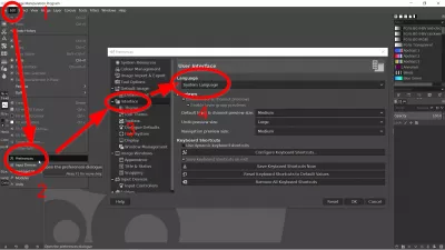 Le langage GIMP peut être facilement modifié en ouvrant l'interface GIMP, en accédant au menu Édition> Préférences> Interface> Langue et en sélectionnant le langage GIMP à utiliser dans l'interface, avant de poursuivre l'édition d'images avec des fonctions simples telles que tracer des lignes droites GIMP, ou des fonctions plus avancées telles que le redimensionnement d'images par lot avec GIMP.