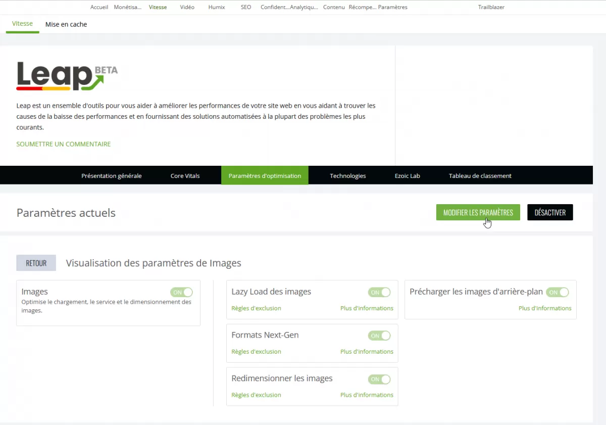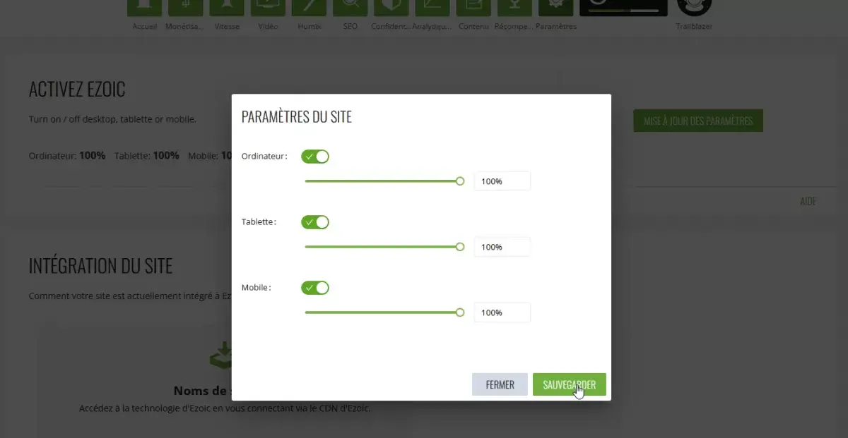 - Activez la vitesse du site pour augmenter les performances de votre site Web