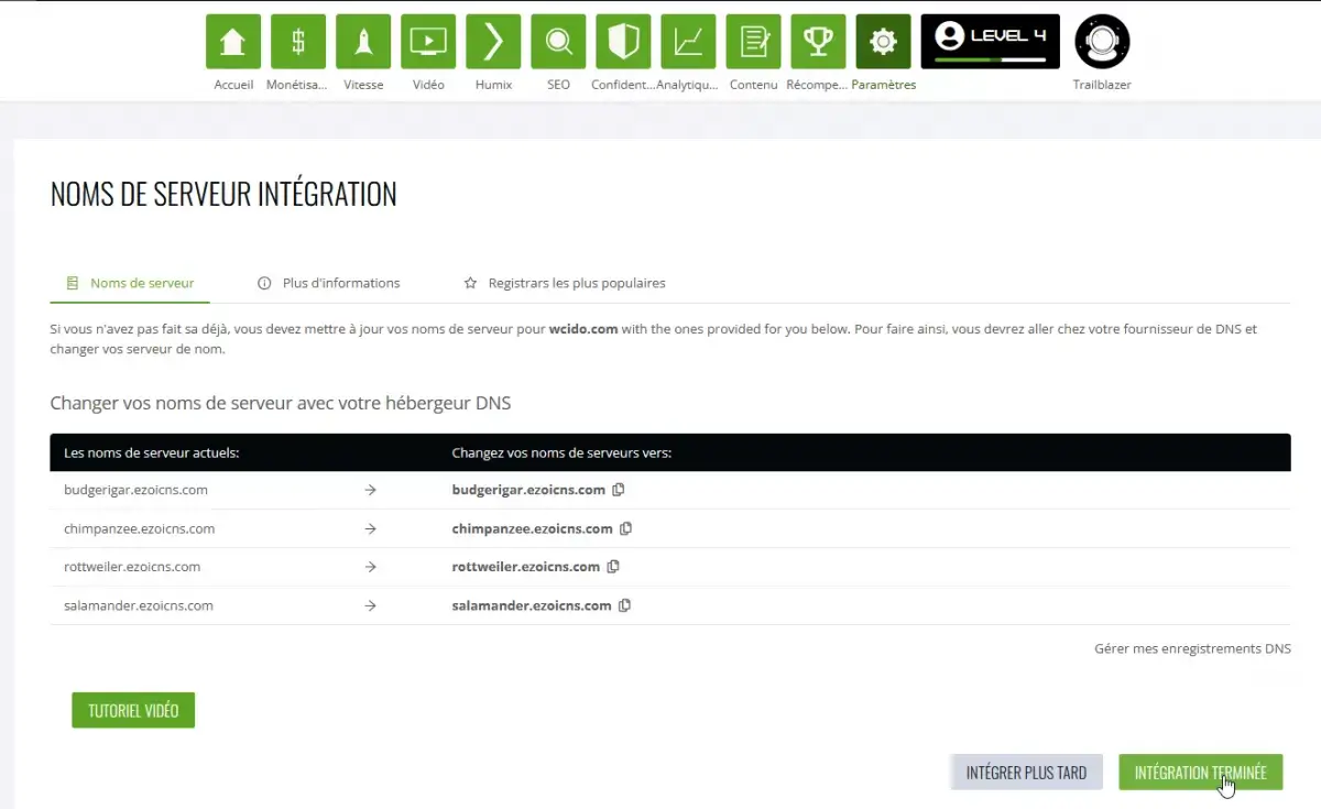 Donc, pour configurer l'intégration DNS, tout ce que vous avez à faire est d'ouvrir leur interface et de copier leurs noms de serveurs un par un.