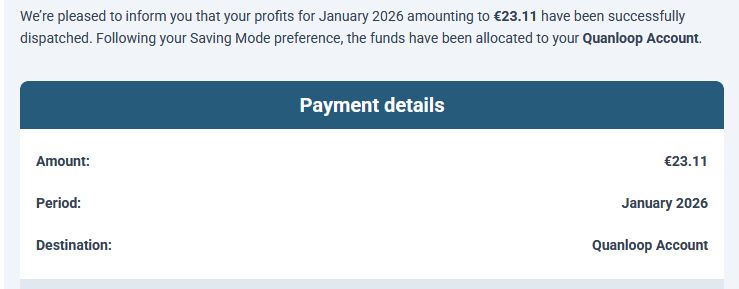 For the period of December 2025 we received 22.82€ in our Quanloop account as interest earnings