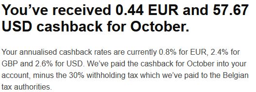 The annualised cashback rate for the money we held with Wise in February 2024 is 2.28% for EUR, 3.31% for GBP and 3.85% for USD.